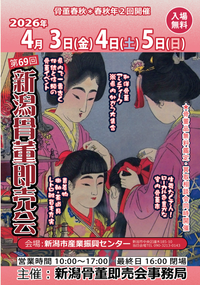 【骨董・蚤の市】新潟骨董まつり 会場は高速道路「新潟中央インター」からスグの立地となっています。無料大駐車場あり。電車だと、JR新潟駅からバスかタクシーです。バスの本数はあまりありません。