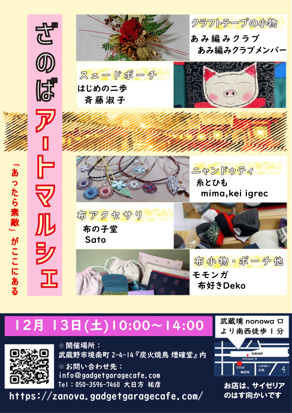 【武蔵境駅徒歩1分】12月13日開催!第51回ざのばアートマルシェのお知らせ 開催情報