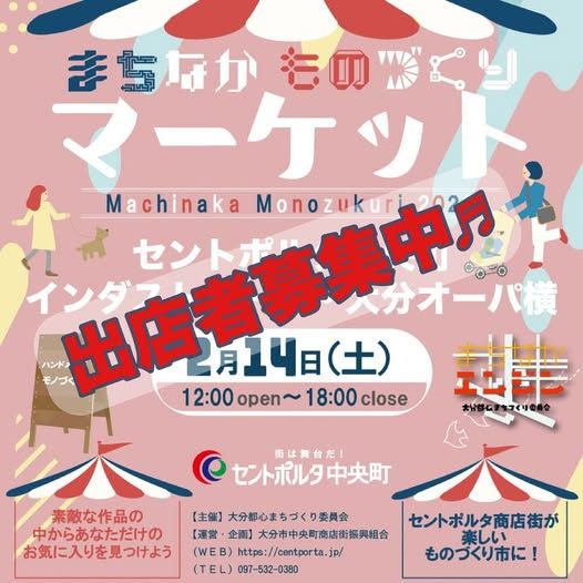 大分県内で最も人通りの多い「セントポルタ中央町商店街」で、毎年2月に開催されるイベントです。才能あふれるアーティストやクリエイターたちが手がけた、美しく個性豊かなハンドメイド作品のお店が、まちなかを彩ります。世界にひとつだけの、あなただけのお気に入りを見つけに行きませんか?