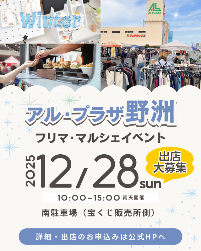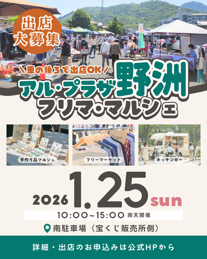 滋賀県野洲市のショッピングセンター、アル・プラザ野洲でフリマ・マルシェ・キッチンカーが集う一大イベントを開催!