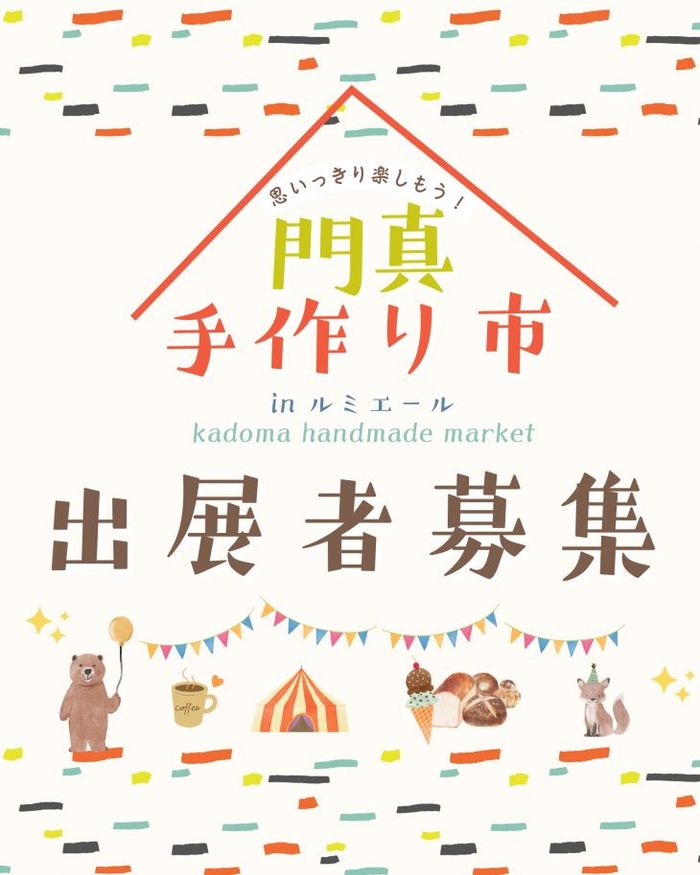 大阪府・門真市民文化会館「ルミエールホール」で、年に3回開催される手づくり市です。雑貨や工芸品、アクセサリーなど、作り手の個性が光るアイテムが並び、ワークショップやフードブースも楽しめます。第40回のテーマは『春らんまんマルシェ』。春の花々、心躍るハンドメイド小物、季節の味覚など、「春」を感じるアイテムが揃います。