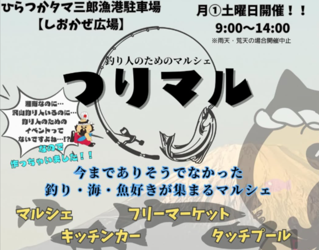 釣りや海、魚に魅了された皆さんにぴったりの、「釣り・海・魚好きが集まるマルシェ」が月1回開催されます。特に7月から9月には、会場をひらつかタマ三郎漁港に変更して行われ、より海の魅力を身近に感じられる環境で開催されます。