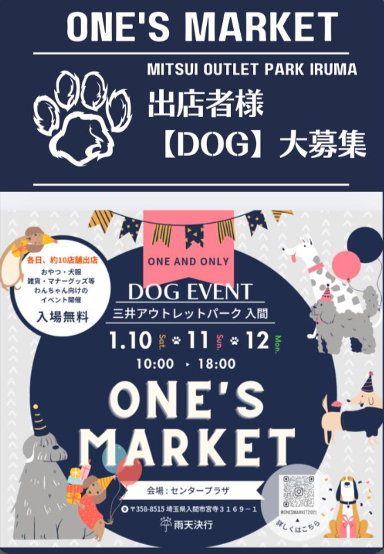 「誰かにとって特別なマーケットの一つでありたい」――そんな想いから、各地で開催されているイベントです。三井アウトレットパーク入間を会場に、わんちゃん・ねこちゃん関連のさまざまなお店が集まります。