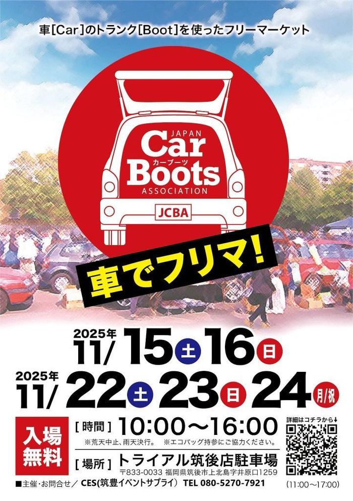 「車でフリマ!」ヨーロッパでは主流の、車をそのまま売り場として利用する日本における蚤の市・フリーマーケットの新しい形「カーブーツ」が筑後で初開催です。