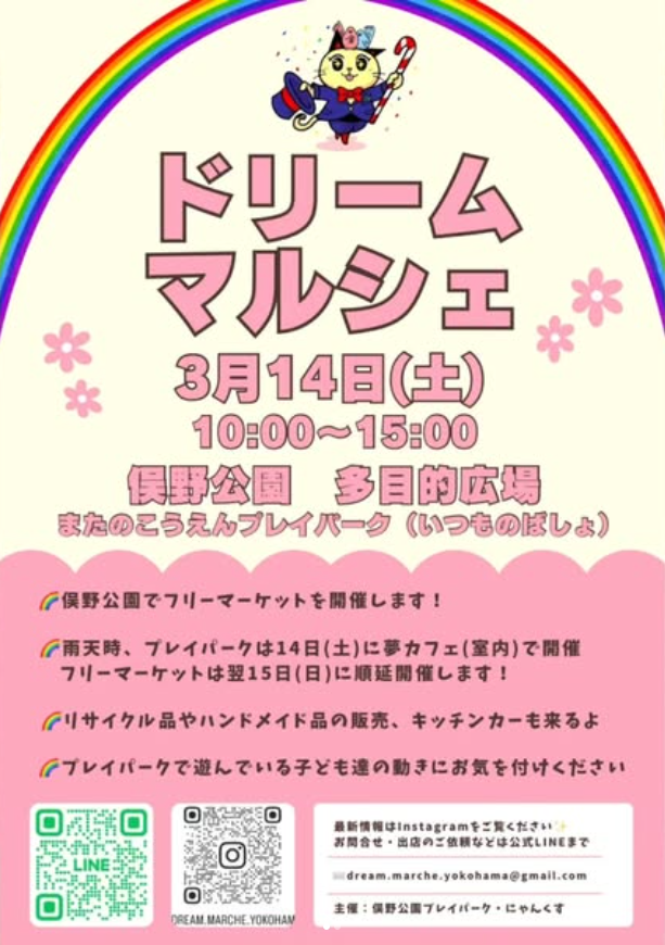 定期開催のプレイパークと同時開催で、リサイクル品・ハンドメイド品などのお店、キッチンカーのおいしいグルメが集まります。大人も子どももたっぷり楽しめるコンテンツが盛りだくさんです。