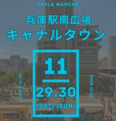 JR兵庫駅前の、訪れる人々が快適に過ごせる居心地の良い空間「キャナルタウン広場」にて開催する、ハンドメイド作品やワークショップや物販やキッチンカーなど集まるアットホームなマルシェです。