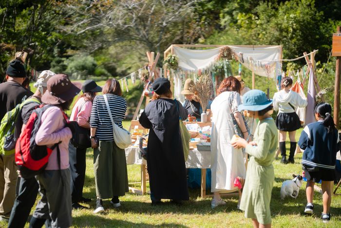 宮城県の自然あふれる「青少年の森」を会場とし、森を散策しながら楽しむことのできる「森のこ・あきない市」。