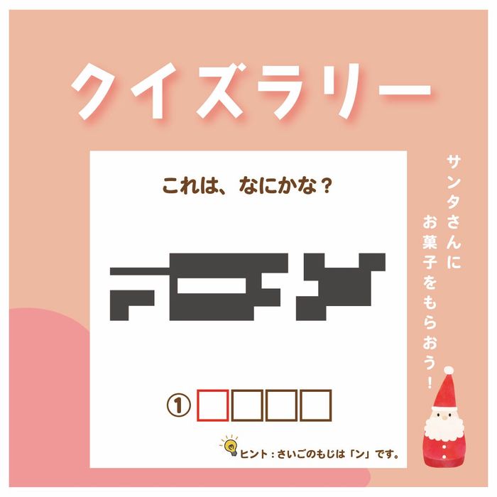 仮装来場でサンタさんからお菓子をプレゼント!クイズラリー正解でお菓子をプレゼント!クリスマスオーナメントをみんなで会場を飾り付け!イベント前後の変化もインスタでUPします。その他、出店者さんによるワークショップなどの作る楽しさを体験頂けます。