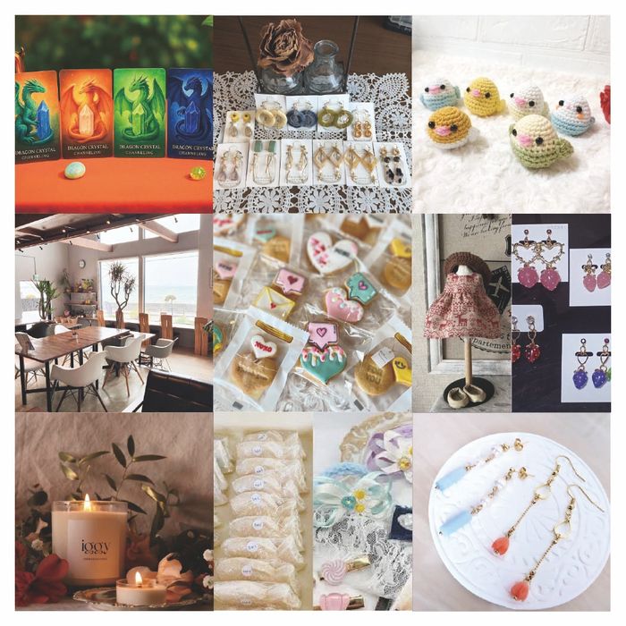 シフォンケーキ、白いたい焼き、コーヒー豆、THE TERRACEのドリンク&フードでグルメも充実!アクセサリー、根塊植物、ハンドメイド雑貨や木工など、お気に入りを見つけて日常を彩りましょう。
