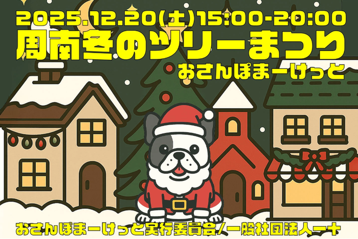 12月20日(土)、「周南冬のツリーまつり」に合わせて開催されるマルシェです。女性の起業を応援し、地域のにぎわいづくりを目指しています。お弁当やお菓子などの食品から、ハンドメイド雑貨やアクセサリーまで、こだわりの20-40店舗が並びます。