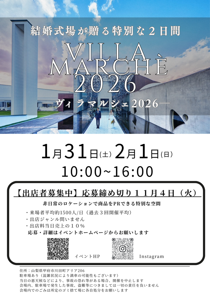 VILLAmarcheは山梨県甲府市の結婚式場ヴィラ・エステリオ主催のマルシェになっています