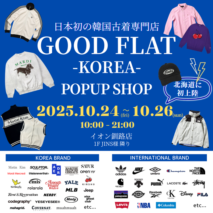 日本初!韓国古着専門店『グッドフラットコリア』@イオン釧路 開催情報