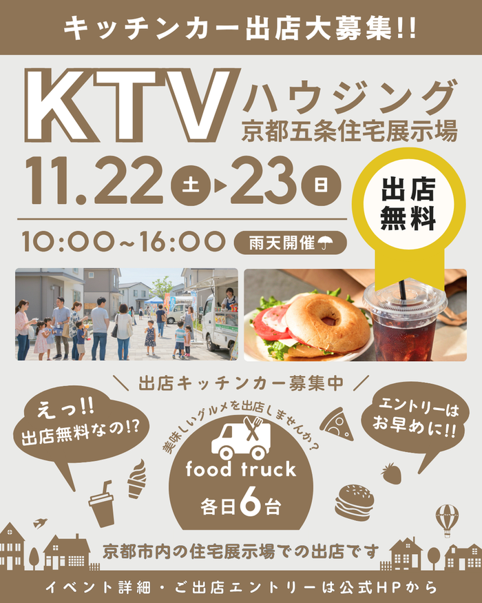 出店無料【KTVハウジング京都五条住宅展示場】キッチンカー大募集 開催情報
