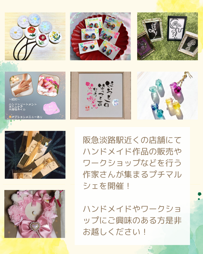 ハンドメイド作家さんの作品販売やワークショップ体験もあります。