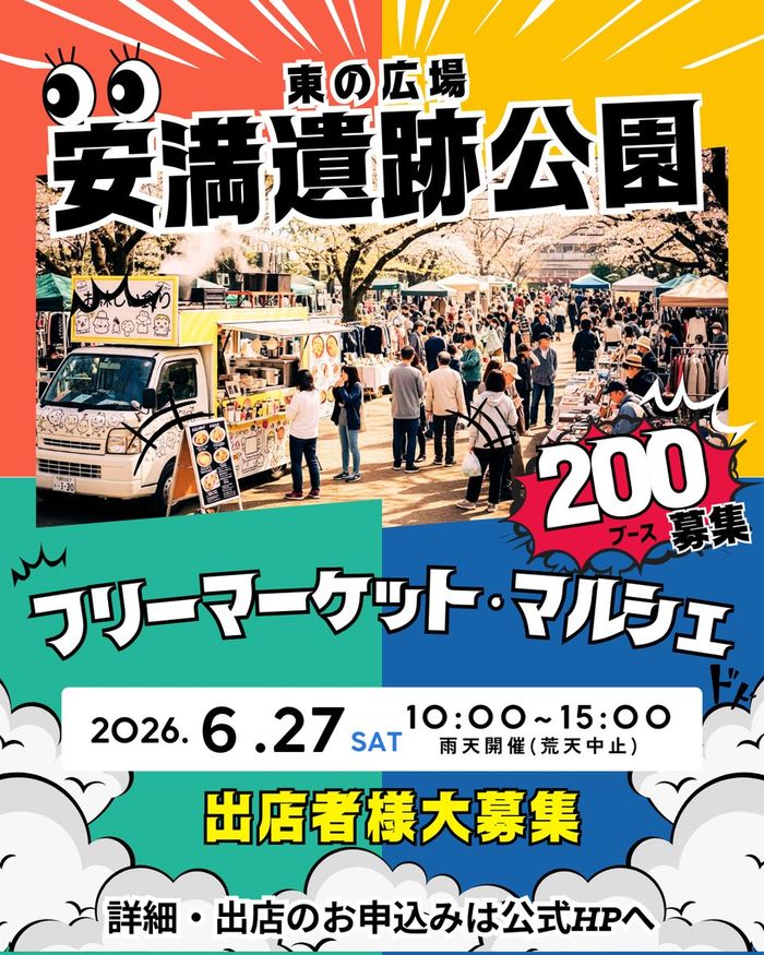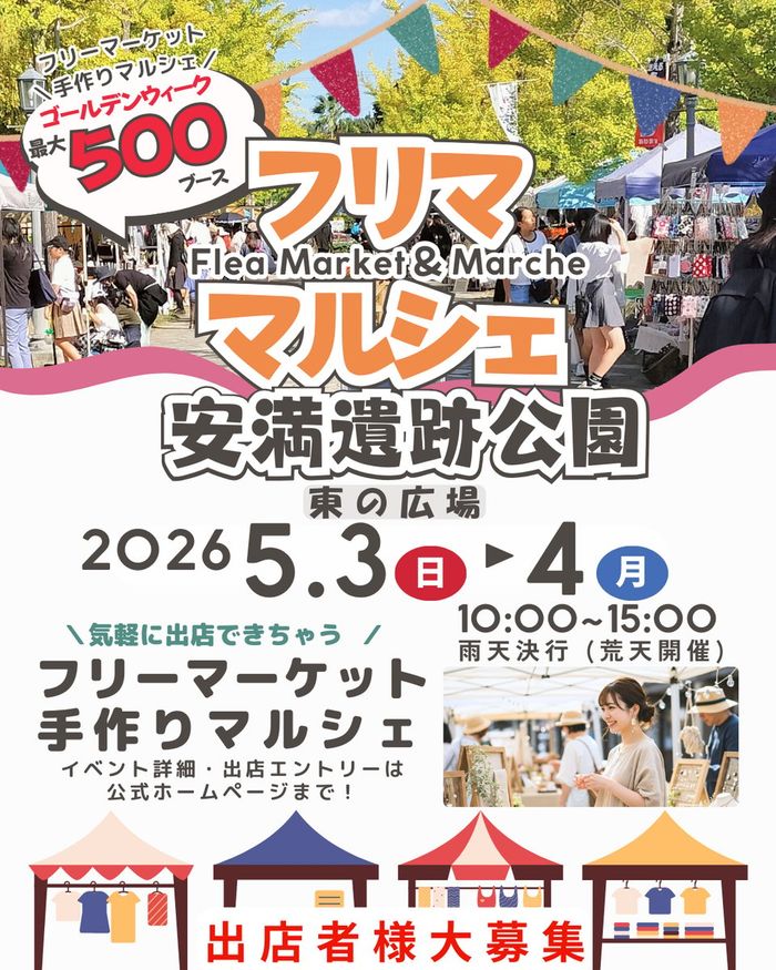 大阪府高槻市で愛されるホットスポット「安満遺跡公園」でフリマ&マルシェイベントを開催します。