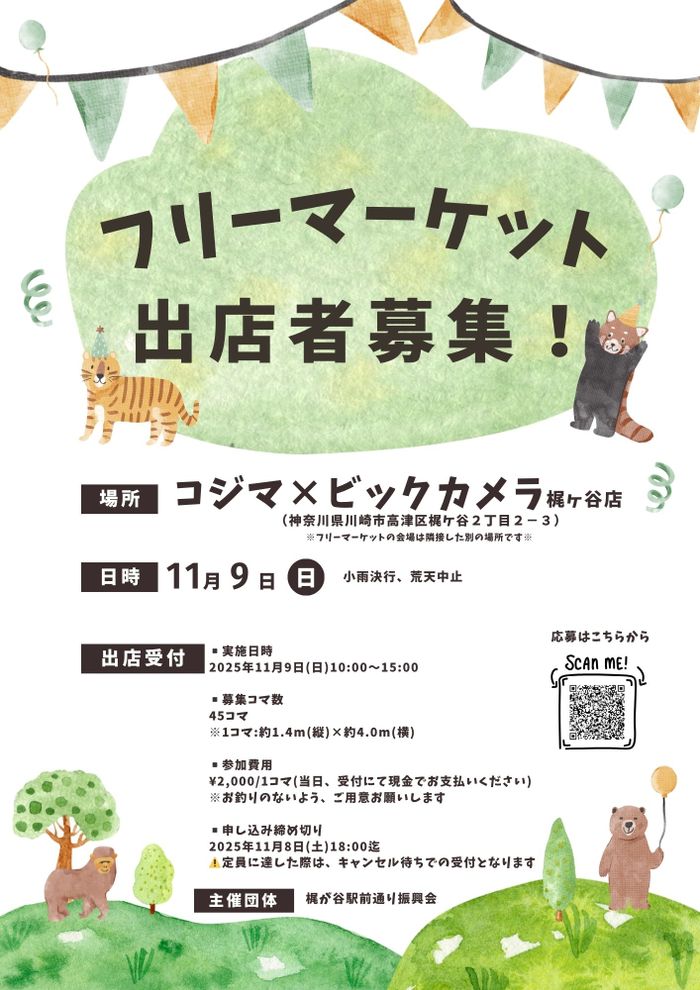 フリーマーケットは梶が谷駅からすぐの場所です。