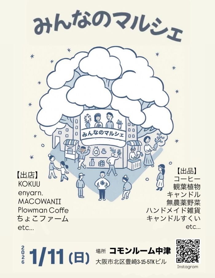 コーヒーや観葉植物、キャンドル、無農薬野菜、ハンドメイド雑貨など、合計10ブースほど出店予定!皆さんと1から作り上げたマルシェです。