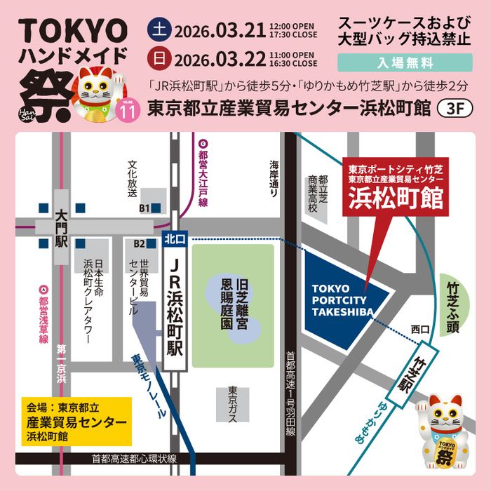・ゆりかもめ竹芝駅から徒歩約2分 ・地下鉄大門駅から徒歩約7分 - 会場入場料