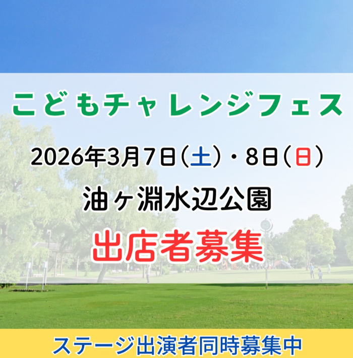 油ヶ淵水辺公園にて「こどもチャレンジフェス」が開催決定!