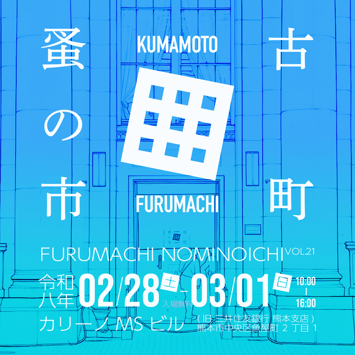 2月の終わりと3月の始まり、季節が移ろう週末に第21回目となる「古町蚤の市」が開催されます。会場のカリーノMSビルには、今回も厳選された古道具や味わい深いアンティーク、個性豊かな古着、アクセサリー、雑貨に加え、心も温まる食料品などが勢揃いします。レトロなビルの趣ある空間で、冬から春へと変わる景色を楽しみながら、あなただけの「とっておき」との出会いをぜひお楽しみください。