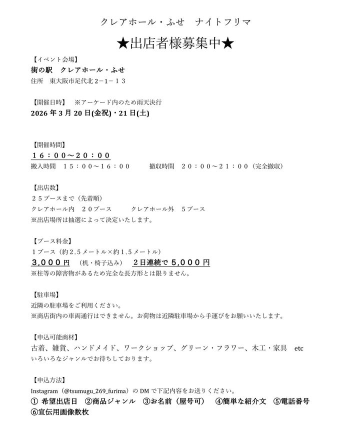 布施ナイトフリーマーケット 開催情報