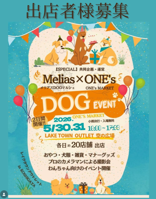 ※こちらのイベントはメリアスDOGマルシェ(https://www.instagram.com/melias_222/)との共同企画・運営で開催されます。