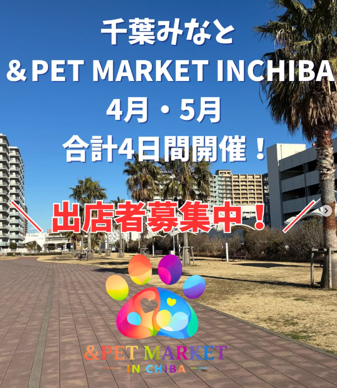 4・5月、千葉みなとさんばしひろばで開催されるペットマルシェです。わんちゃん・ねこちゃんのためのグッズやおやつをはじめ、マッサージやトリミング、似顔絵、キッチンカーなど、約50のブースが並びます。潮風を感じる開放的なロケーションで、大切な家族であるペットと一緒にゆっくり過ごしませんか。