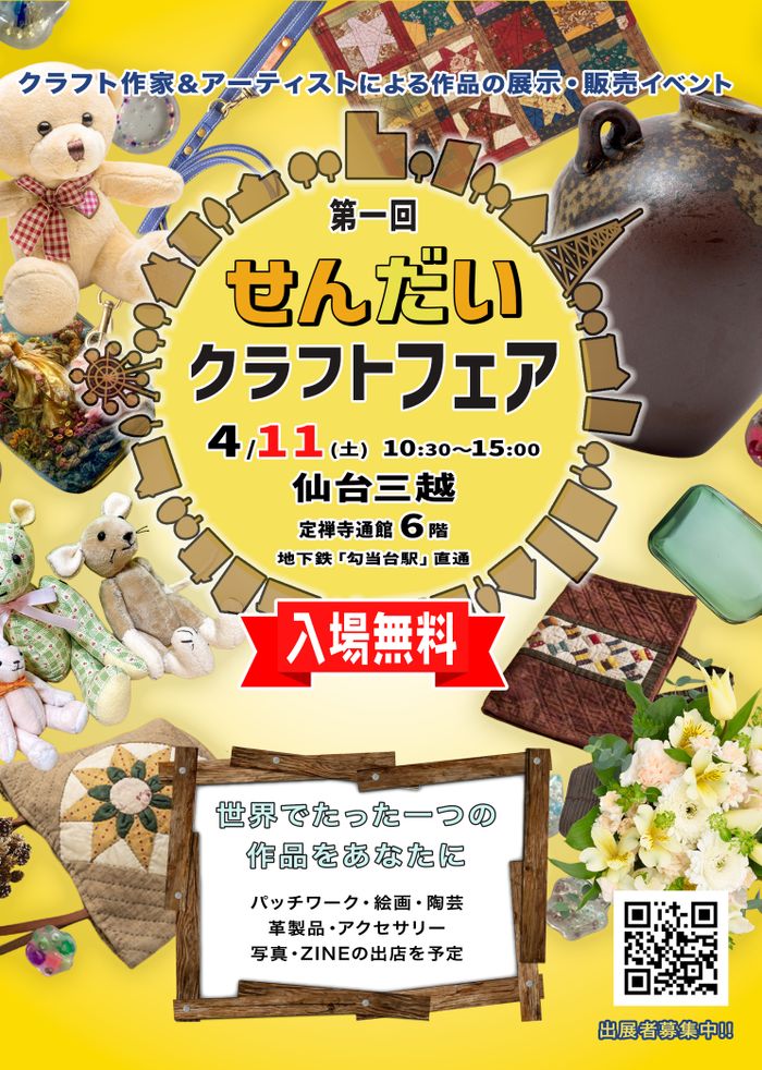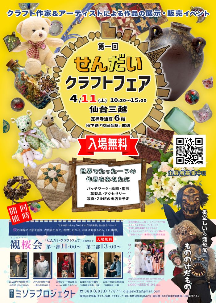 2/28「仙台ZINEフェス」に続き、4/11「せんだいクラフトフェア」会場にて、昨年製作した10点余りの造形物を展示します
