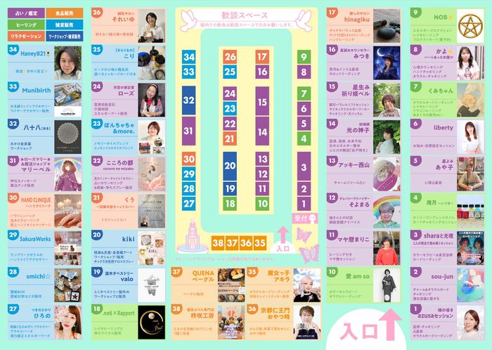 ハンドメイド・食品・スイーツ・占い・セッション・アート・ワークショップ・ヒーリング・リラクゼーション・癒しの38ブースが集結🛼