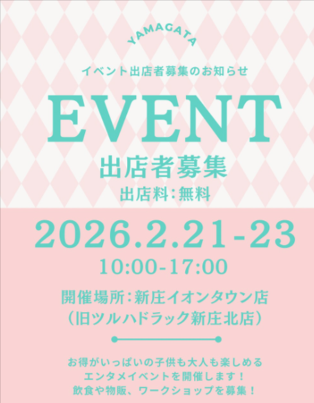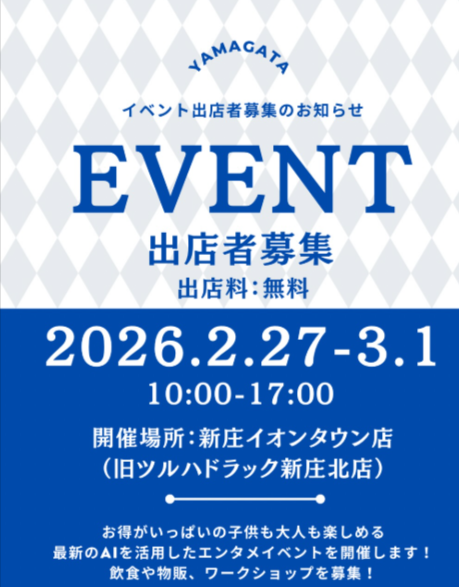「YAMAGATA CONNECT EVENT 新庄イオンタウン店」は地域密着型イベントで楽しめる企画が盛りだくさん予定されています。