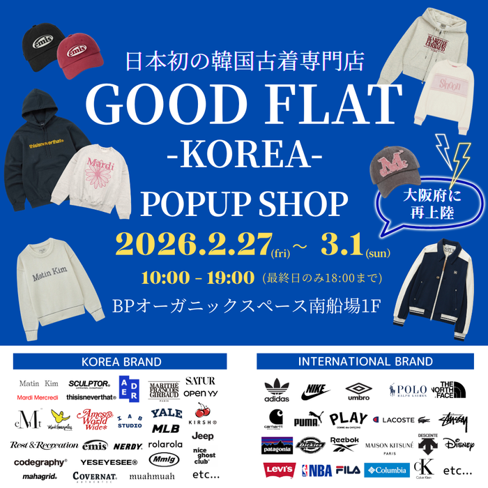 日本初!韓国古着専門店『グッドフラットコリア』@BPオーガニックスペース南船場 開催情報