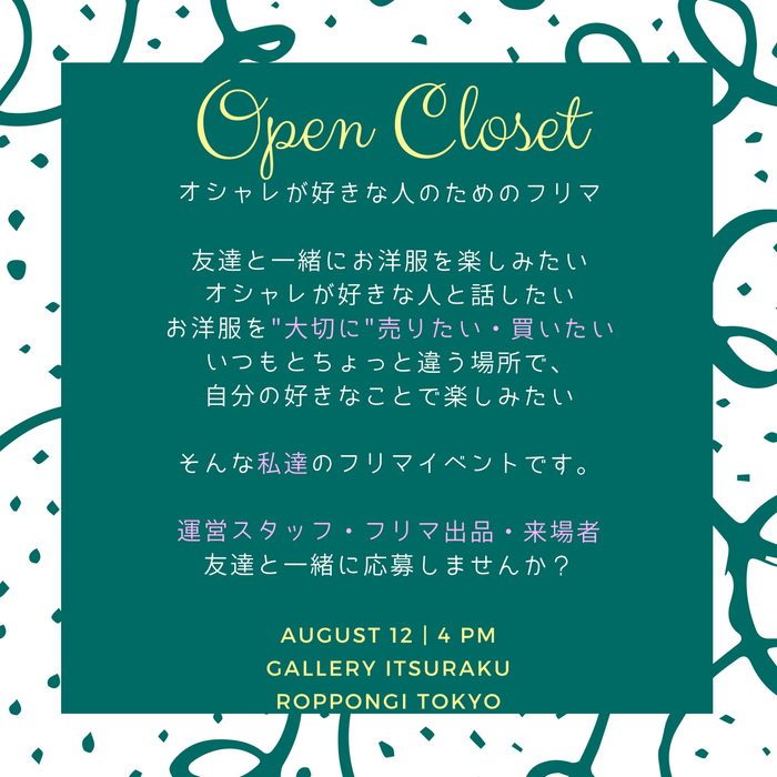 [六本木/乃木坂 16:00- 20:30]Open Closet - オシャレが好きな人のためのフリマイベント 開催情報 -終了-