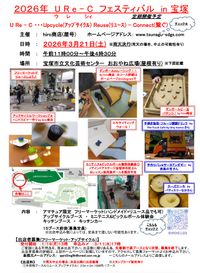URe-C フェスティバル in 宝塚 宝塚市立文化芸術センター 18店 【電車】 JR「宝塚」駅・阪急「宝塚」駅 から徒歩11分 阪急「宝塚南口」駅から徒歩6分 【車】 中国自動車道「宝塚インターチェン ジ」から西進2km 有馬街道を道なりに直進、大多橋 交差点を右折し、国道176号線を 直進して、手塚治虫記念館方面へ