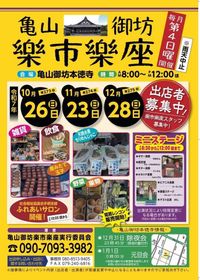 亀山御坊楽市楽座 50店 ・お車でお越しの方は、バイパス姫路南ランプを降り、南へ下り、2つ目の信号を右折してください。 駐車場の収容台数に限りがあります。なるべく公共交通機関でお越しください。 ・電車でお越しの方は、山陽電鉄の亀山駅を下車してください。駅の東側すぐの白い壁がお寺です。